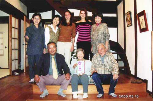 ホームステイ先の寺岡家の玄関で記念撮影 |