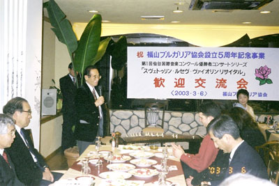 | リサイタルの後、会場を移して、福山ブルガリア協会としての歓迎会を行ない、そこで光成歌能子さんが琴の演奏をされ、日本とブルガリアの文化交流がなされました。このときに、ルセブさんに、福山ブルガリア協会のHPに載せるための個人的な質問を許していただいたので、それを書いて彼の人柄を紹介します。 | ![]() |